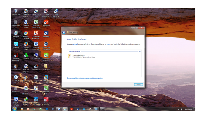 - Apabila ada tampilan seperti dibawah ini maka proses sharing telah berhasil