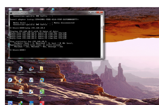- Setelah itu untuk mengecek apakah komputer satu dan komputer dua terhubung atau tidaknya kita jalankan program Command Promt. Pada Komputer satu dengan masukan perintah ping dan masukan IP Adress 192.168.10.2. Jika tampilan seperti dibawah ini maka berhasil