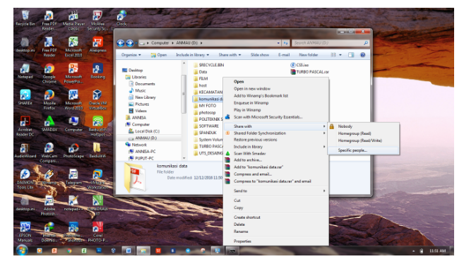 - Pilih Folder yang akan disharing. Klik kanan pilih Share With Specifik People